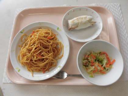 スパゲッティボンゴレ 牛乳 野菜サラダ さつまいもパイ