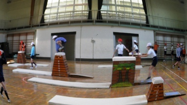 暖かくなった午後の体育館で、5年1組の子どもたちが跳び箱運動に取り組んでいました。きびきびとけじめのある学習態度に感心しました。開脚跳びやかかえこみ跳び、台上前転など、それぞれの課題の解決に向けて、熱心に取り組んでいました。