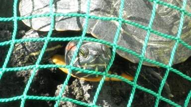 雨が上がると、ぐんぐん気温が上がり暖かな天気になりました。久々に校庭で遊ぶ子どもたちも実に楽しそうです。また、3匹のカメさんたちも今日は仲よく甲羅干しをしていました。ネットから顔を出し、お茶目な仕草がなんともいえません。