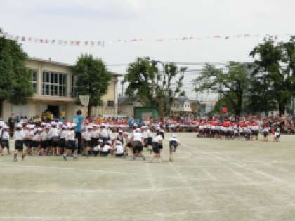 1年生の「U.S.A玉入れ」です。曲に合わせて、可愛らしい踊りを披露しました。