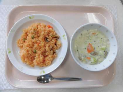 米:山形県 玉ねぎ:兵庫県 にんじん:千葉県 キャベツ:千葉県 パセリ:千葉県 グリンピース:ニュージーランド 鶏肉:宮崎県