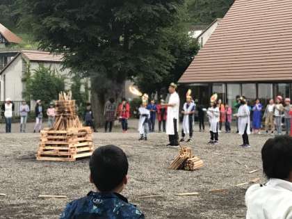 一日目の夜、炎を囲んで、みんなで歌ったり踊ったりと大いに盛り上がりました。