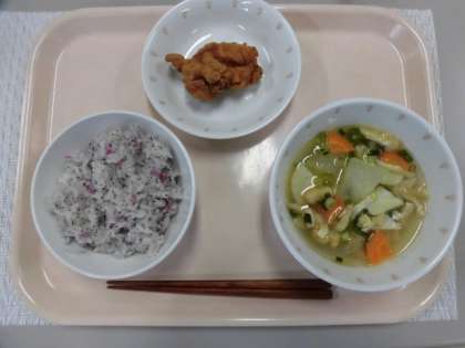 ゆかりごはん 牛乳 鶏肉のから揚げ 冬瓜汁
