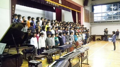 6年生を送る会は、在校生全員が6年生に感謝をする会です。涙雨から涙雪に変わる天気となりましたが、体育館は熱い想いであふれていました。3年生は6年生のすごさを寸劇で表現していました。