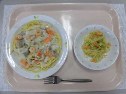 スパゲッティクリームソース 牛乳 野菜のカレードレッシング