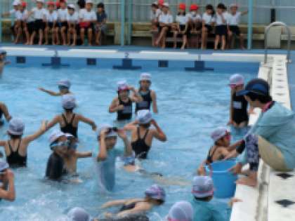 まず、水を楽しむことから、蹴伸びの練習、宝探しと久しぶりの水泳の授業でした。