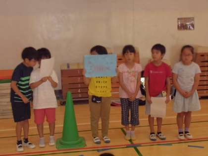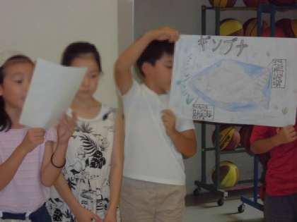 学校ビオトープの生き物について調べたことを、各班で発表しました。