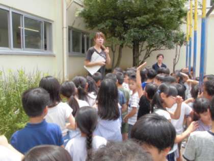 ゲストティーチャーからは、「瀬田小学校の観察池には、い草に似た『サンカクイ』が沢山あり、ミントも自生している」といった植物の説明をしていただきました。