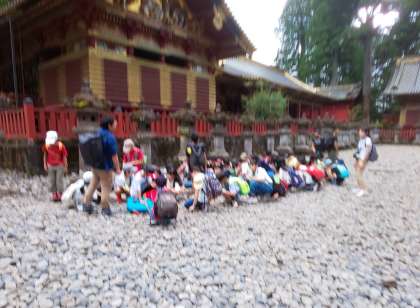 クイズラリーの途中、雨が降ってきましたが、みんなクイズに夢中です。