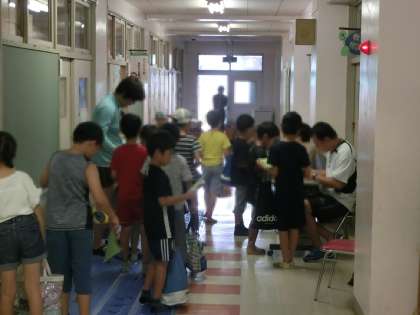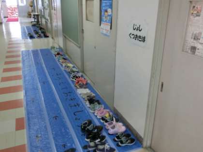 受付では、きちんと整列し、靴も並べてあり立派です。