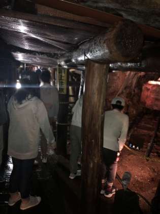 足尾銅山では、トロッコ列車に乗って坑道を見学しました。