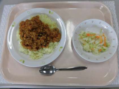 レンズ豆入りドライカレー 牛乳 キャベツサラダ