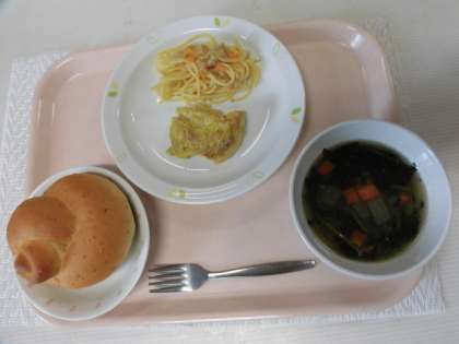 セサミパン 牛乳 タンドリーチキン キャベツとツナのスパゲッティソテー ポパイスープ