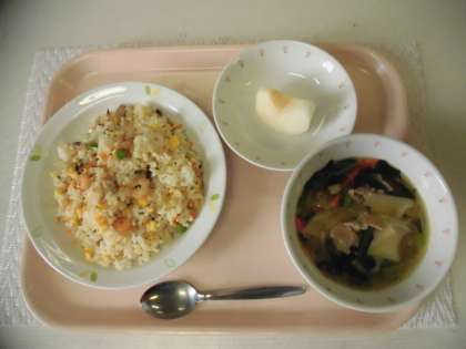 えびチャーハン 牛乳 ワンタンスープ くだもの(なし)