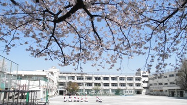 この時期らしい色の組み合わせです。校庭では体育をしているクラスもあり、見ていて飽きない光景です。