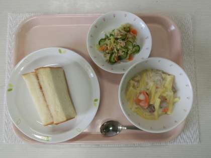 ジャムサンド 牛乳 マカロニのクリーム煮 ツナサラダ