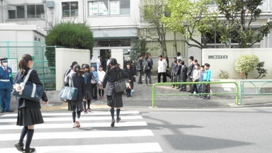 瀬田小の正門には、代表委員や看護当番の先生だけでなく、瀬田中学校の生徒や銅谷校長先生にも来校していただき、あいさつの輪を広げました。一方、瀬田中正門では、瀬田中生徒だけでなく、瀬田小の子どもと二子玉川小の子どもたちも加わり、あいさつ運動をしました。