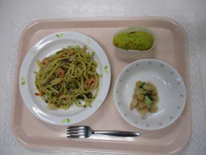 和風スパゲッティ 牛乳 ビーンズサラダ スィートポテト