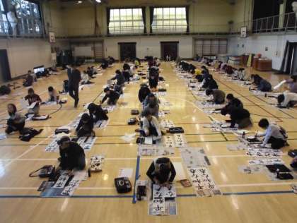 6年生の全学級合同で、書き初め会を行いました。