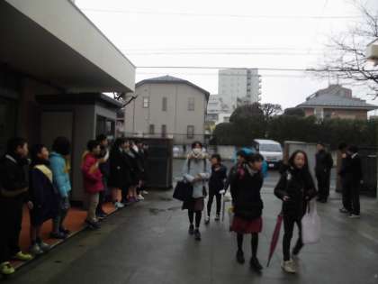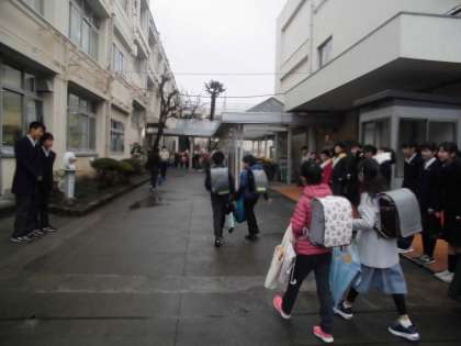 中学生の代表者が小学校に来校して、朝の挨拶を元気よくしてくれました。