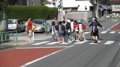土曜日授業の登校は、いつも以上に気をつけて登校しなければなりません。スクールゾーンについて土曜や日曜、休日は対象外だからです。学校の周囲を一周してみると、予想以上に自動車の交通量が多いことが分かりました。そこで、PTA会長さんを始めPTAの役員の皆さんやおやじの会の皆さんが学区域のの要所で子どもたちの安全な登校を見守っていただきました。ありがとうございました。