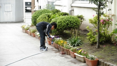 登校前に正門でプランターの花に水やりをする高学年の様子です。栽培委員会に限らず、5・6年生は、学校のいろいろなところで地道な活動に取り組んでいます。みかけたら「ごくろうさま」とねぎらいの言葉をかけるようにしています。