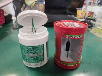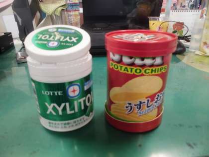 先生たちも、うごくおもちゃを 作ってみました。(ただの おかしの 空きばこでは ありませんよ。)この空きばこは、どんな うごき方をするでしょう?