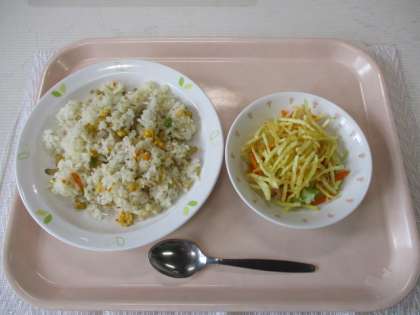 鶏とごぼうのピラフ 牛乳 じゃがいものハニーサラダ
