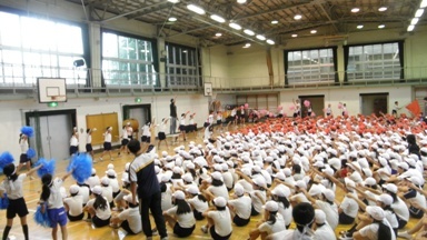 朝からあいにく雨の天気となり、最後の運動会全体練習は体育館になりました。3回中校庭で練習できたのは、一昨日の1回だけとなりました。それでも、体育館での合唱や応援練習は、担当の子どもたちのがんばりもあり大変盛り上がりました。運動会では子どもたちが力の限り取り組んできたことがいかんなく発揮できるよう、よい天気のもとでさせてあげたいと切に思っています。