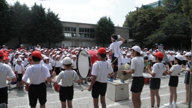 1年生は、小学校初めての運動会です。開会式で児童代表の言葉を緊張しながらも堂々と述べることができました。また、毎朝、練習に励んできた音楽係の子どもたち。決して演奏が得意な子ばかりではありません。演奏はできて当たり前と思われがちですが、外での演奏はそう簡単にできるものではありません。練習を通してしっかりと演奏ができるようになったのです。これも運動会を通して成長した一つの姿です。