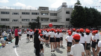 午前の部の最初の競技は大玉送りです。それぞれの組の総合力が試される競技です。この競技では白組が勝ち、さい先のよい展開になったのですが・・・。
