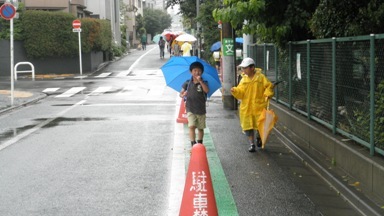 5月に続いて2回目の土曜授業日です。本日も登校時に15名近くのPTA役員の皆さんやおやじの会の皆さんが雨の中、子どもたちの登校を見守ってくださいました。ありがとうございます。地域のたくさんのやさしい目に囲まれて、子どもたちは雨の中を元気に登校していました。ナメクジを見せてくれた子もいます。