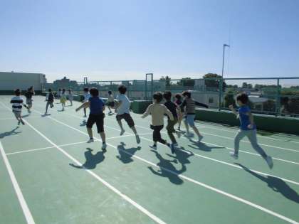 「秋って、どんなところでも涼しいの?」—そんな疑問に、「太陽の近くは暖かいんじゃない?」という返し。生活科の秋探しで、地面や日陰、日向でさえも、秋は涼しく感じることを知った子供たち。だけど、「本当かな?」の疑問が生まれたようです。そこで、地面より太陽に近い屋上に行って、温度を確認することに。「うわ!まだ、暑いよ?」そんな声とともに、初めて訪れた屋上に大興奮の子供たち。そのまま、瀬田の町を眺めたあとは、屋上で走り回って遊びました。
