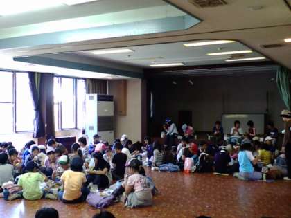 田園プラザで昼食の予定でしたが、暑いためホテルSLさんのご厚意により室内で昼食を食べさせていただきました。予定よりも早めに動いているため、出発は12時30分となります。到着は3時30分から4時30分を予定しています。