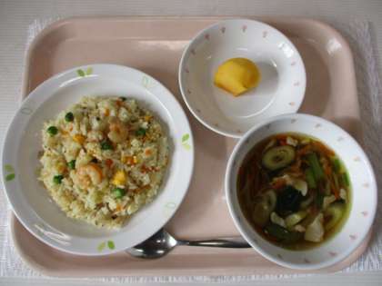 チャーハン 牛乳 春雨スープ くだもの(柿)