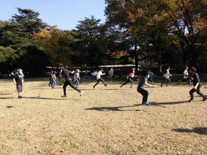 学年全員でドッジビーや逃走中、クラス遊び、どのプログラムも6年生が自分たちで声をかけ進行をしました。そんな逞しい面とは反対に、芝生の上で転げまわって遊ぶ6年生の姿は微笑ましかったです。