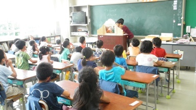 木曜日は朝読です。今日は図書委員会の5・6年生が1年生の教室に訪問し、読み聞かせをしました。どの教室も1年生が集中して図書委員の語りを聞いていました。