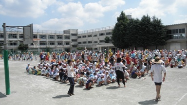 地震を想定した避難訓練を実施しました。この季節なのでプールを利用している学年も避難をします。3月11日の大震災では、プールの水が波打ち、A昇降口まで流れてきました。プールでも安全に素早くプールサイドに第一次避難をすることが求められます。