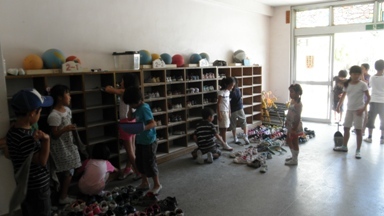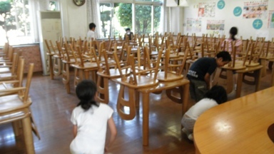暑くても掃除はあります。自分たちの学校を自分たちできれいにします。