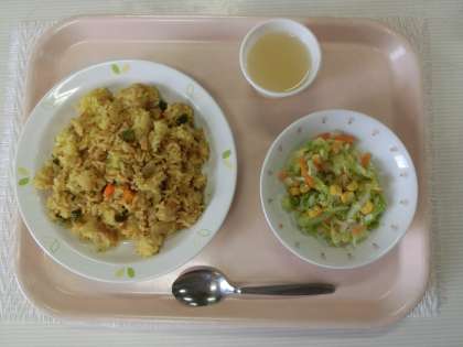 カレーピラフ 牛乳 コーンサラダ りんごゼリー