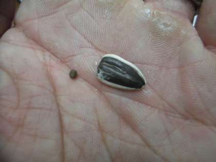 「先生、大きく咲くヒマワリの花も、はじめはこんな小さな種なんだね。」
