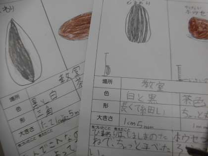 観察カードに、小さな種を大きく描く子供たちの姿に、種と同様、大きく育っていく楽しみを感じられた一日でした。