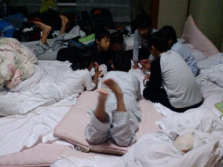 少し霧雨となりましたが、予定通りキャンプファイヤーができました。その後入浴し、部屋ごとにくつろいだり、係の打ち合わせをしたりしました。林間初日はほぼ予定通りです。