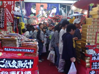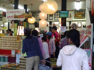 中禅寺湖のお土産屋さんでお買い物をしました。お土産屋さんの屋根でおサルさんがお饅頭を食べていたため、大切なお土産を取られないように注意させました。