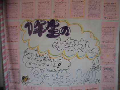 「1年生は、瀬田小ディスコ、とってもかわいかったよ。ぼくたちより、じょうずだったよ。」
