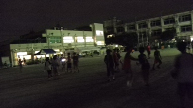 就寝前の自由時間での校庭の様子です。夜の休み時間というところです。