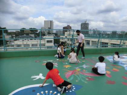 最後に、一人一人「誰が一番100を自分で測れるか?」を予想し、自分が100mだと思うところで止まってもらいました。なんと、ぴたり賞が出て、みんなで大拍手。
