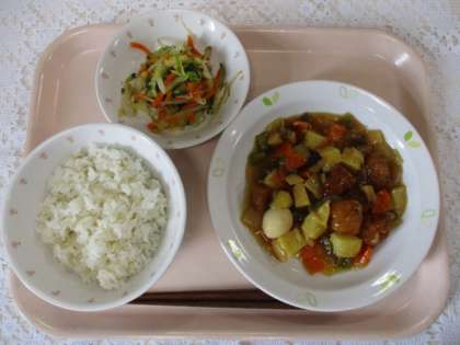 麦ごはん 牛乳 酢豚 白菜のサラダ