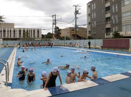 校舎改築工事に伴い、9月に取り壊されてしまうプールで今年最後の水泳指導を進めています。