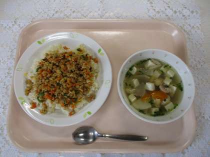 そぼろごはん 牛乳 大根ととうふのすまし汁